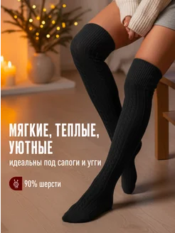 Гольфы теплые высокие под сапоги черные вязаные гетры