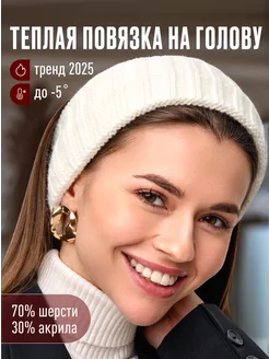 Повязка на голову теплая зимняя для волос вязаная на уши