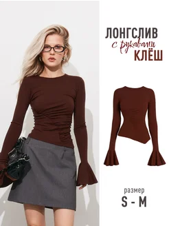 Лонгслив облегающий с длинным рукавом кофточка с драпировкой