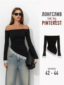 Лонгслив с открытыми плечами облегающий кофта с кружевом