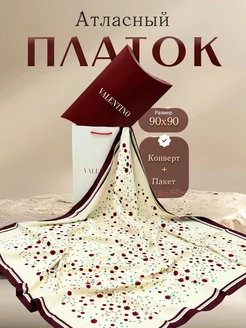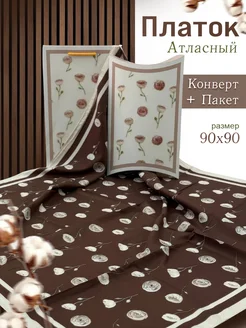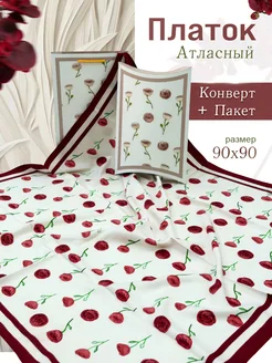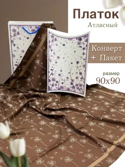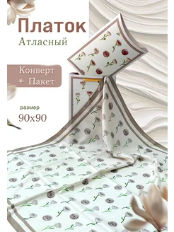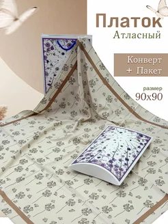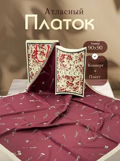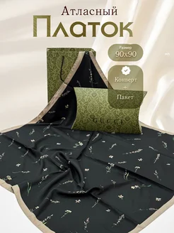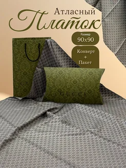 Платок на голову атласный 90 см в Подарочной упаковке