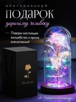 Подарок подруге на новый год 2026 Роза в колбе с подсветкой