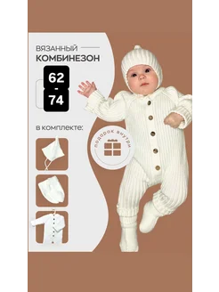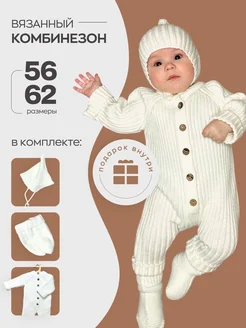Вязаный комбинезон для новорожденных комплект на выписку