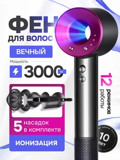 Фен для волос профессиональный с 5 насадками и ионизацией