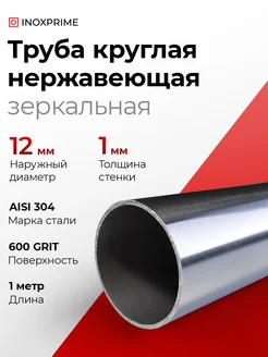 Труба круглая нержавеющая ⌀12x1 мм, зеркальная, длина 1 м