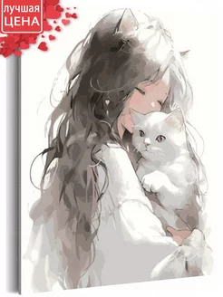 Картина по номерам на холсте Девушка с котиком 40х50 см