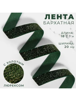 Лента бархатная, с золотым люрексом, 20 мм, 18 ± 1 м, цвет з