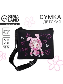 Сумка детская для девочки "Аниме" на молнии, цвет чёрный