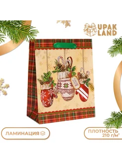 Новый год. Пакет подарочный, ламинированный, "Варежки",18 х