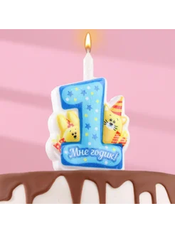 Свеча в торт "Мне годик!" с котом и кроликом, 9,7 см, 12 мин
