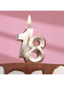 Свеча в торт "Юбилейная", цифра 18, 10 см, шампань