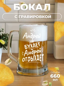 Пивной бокал с гравировкой Андрей не бухает