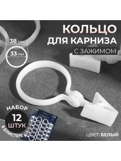 Кольцо для штор, с зажимом, d = 33 38 мм, 12 шт, цвет белый