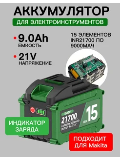 21700 Аккумулятор 21В 9Ач для электроинструмента