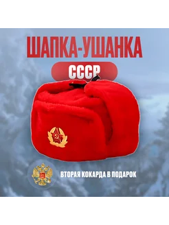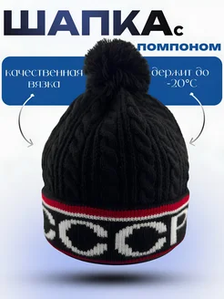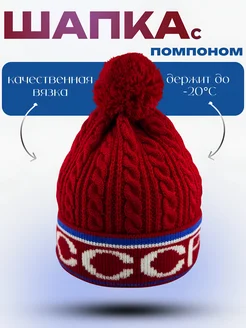 Шапка СССР с помпоном зимняя, шапка с флисовой подкладкой