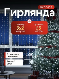 Гирлянда штора новогодняя 3x2 занавес