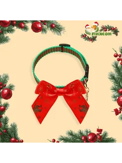 Ошейник для собак + бант + новогодний подвес "Подарки"