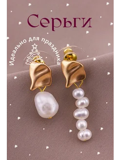 Серьги бижутерия жемчуг новогодние ассиметрия
