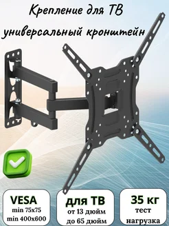 Кронштейн для ТВ наклонно-поворотный на стену 13"-65"