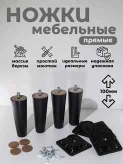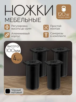 Ножки мебельные регулируемые металлические 10 см черные 4 шт