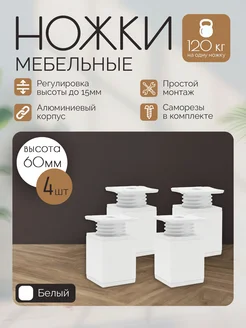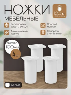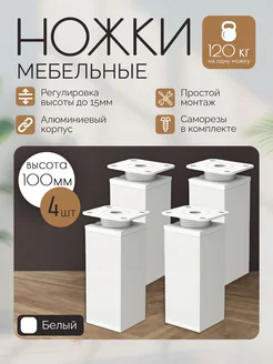 Ножки мебельные регулируемые металлические 10 см белые 4 шт