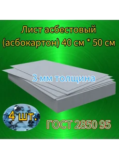 Лист асбестовый (Асбокартон) 40 см * 50 см. 3 мм. 4 шт