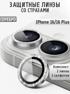 Защитное Стекло на камеру iphone 16 16plus со стразами
