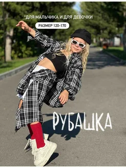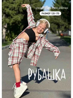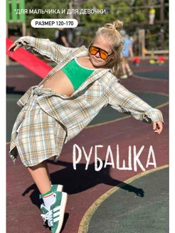 Рубашка в клетку легкая оверсайз с длинным рукавом