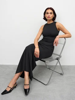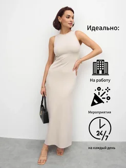 Платье лапша длинное в рубчик офисное