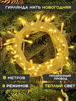 Гирлянда на елку светодиодная новогодняя нить 8м