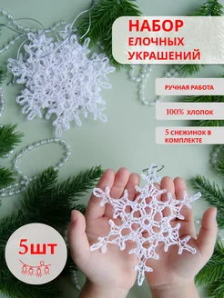 Набор вязаных елочных игрушек "Снежинки" 5 штук в наборе