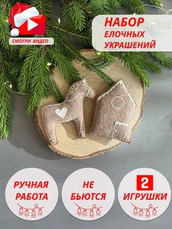 Набор елочных игрушек "Пряничная лошадка и домик» из фетра