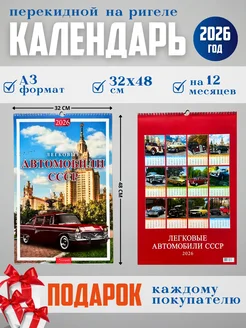Календарь настенный перекидной на ригеле А3 на 2026г,машины