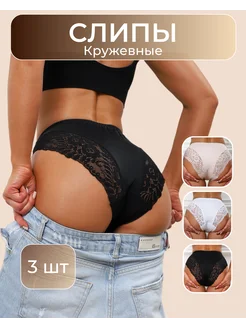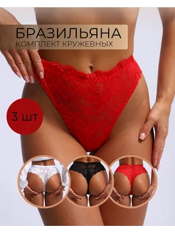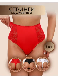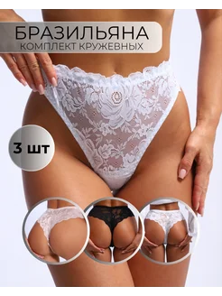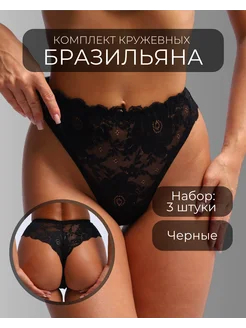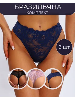 Трусы кружевные набор с высокой посадкой бразильяна стринги
