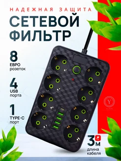 Сетевой фильтр 8 розеток 4 usb 3 м кабель