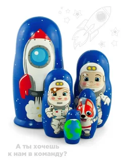 Матрёшка деревянная сувенирная 5 мест 15 см космос