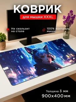 Коврик для мышки большой 900x400 аниме неоновая кошка