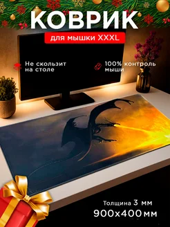 Игровой коврик для мышки с драконом большой 900х400 мм