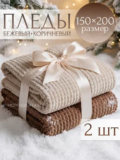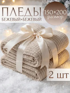 Плед 150х200 см на диван и кровать бежевый, 2 шт