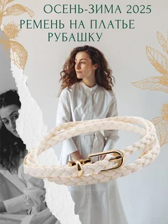 Ремень тонкий женский на пояс талию узкий косичка синий
