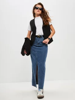 Юбка джинсовая длинная с разрезом спереди
