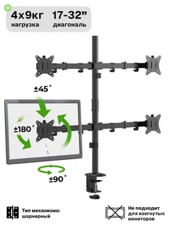 Кронштейн для четырех мониторов 17”-32” OZ66-C048