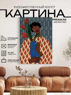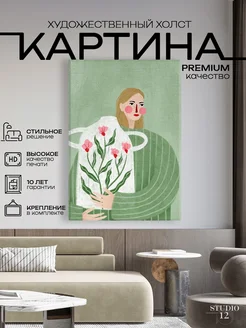 Картина на стену большая Девушка с цветком 80х110 см