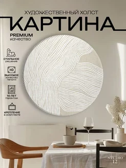 Круглая картина на стену Белые линии абстракция 70 см
