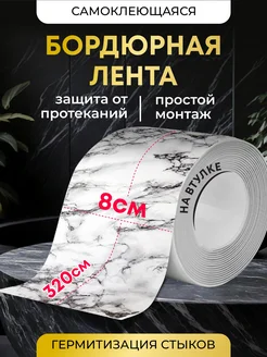 Бордюрная лента плинтус для ванны самоклеящаяся мрамор