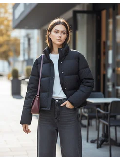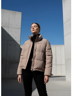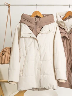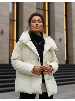 Куртка объемная оверсайз стеганая белая с капюшоном
