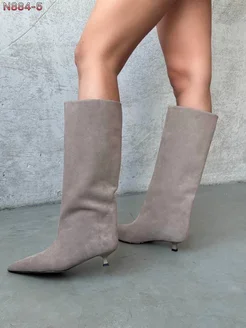 Сапоги трубы на низком каблуке демисезонные замшевые