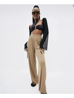 Брюки широкие в рубчик палаццо - лапша