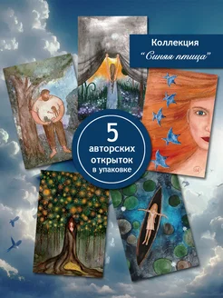 Почтовые открытки 5 шт. "Синяя птица" авторские