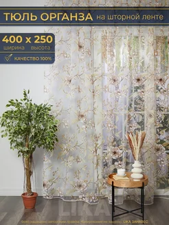 Тюль 400х250 см в спальню гостиную на кухню с рисунком